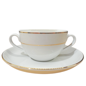 Pojemność 300 ml pozwala na komfortowe serwowanie zup, bulionów czy kremów, a porcelana najwyższej jakości zachwyca śnieżnobiałym kolorem i subtelnym połyskiem. Delikatny złoty rant podkreśla prestiż i kunszt wykonania, czyniąc każdy posiłek wyjątkowym.