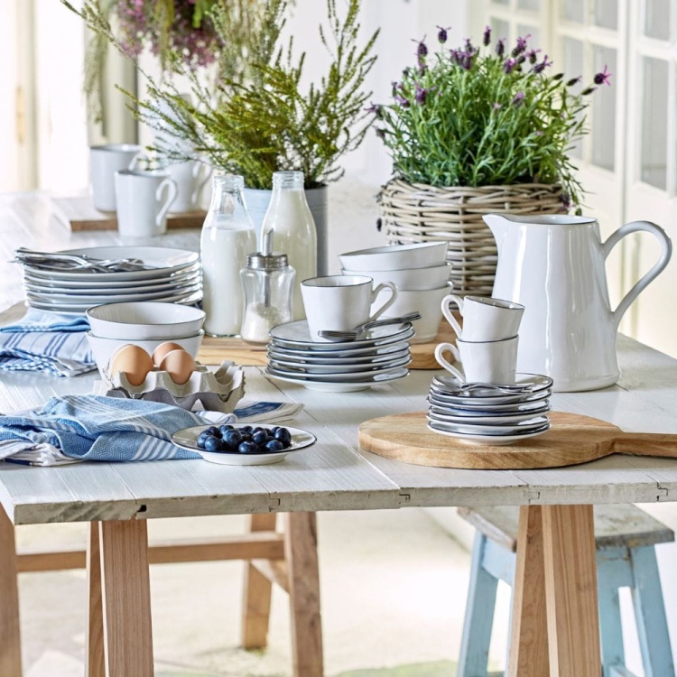 Odkryj wyjątkową kolekcję Beja White and Blue od Costa Nova, która łączy ponadczasową elegancję bieli z subtelną granatową obwódką, tworząc idealną harmonię pomiędzy klasyką a nowoczesnym stylem. Wykonana z wysokiej jakości ceramiki, ta kolekcja nadaje się do każdego wnętrza, wnosząc na stół elegancję i subtelną kolorystykę. Beja White and Blue to seria naczyń, które sprawdzą się doskonale zarówno podczas codziennych posiłków, jak i na wyjątkowych okazjach. Dzięki swojej prostocie i eleganckiemu wykończeniu, idealnie komponuje się z innymi elementami zastawy, tworząc spójną aranżację stołu. Granatowa obwódka nadaje naczyniom unikalnego charakteru, wyróżniając je na tle innych. Ceramika Beja White and Blue jest nie tylko estetyczna, ale również funkcjonalna – naczynia są odporne na uszkodzenia i bezpieczne do użytku w zmywarce, mikrofalówce i piekarniku, co zapewnia wygodę w codziennym użytkowaniu. Trwałość i łatwość w pielęgnacji sprawiają, że będą służyć przez lata. Uzupełnij swoją zastawę o produkty z kolekcji Beja White and Blue i wprowadź na swój stół odrobinę elegancji i nowoczesności. Kolekcja Beja White and Blue dostępna w sklepie www.pieknaporcelana.pl