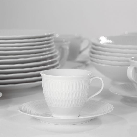 Kolekcja Sofia łączy klasyczną biel z elegancką formą i nowoczesnym designem, tworząc idealną oprawę dla wyjątkowych chwil spędzanych z bliskimi. Porcelana ozdobiona unikalnym reliefem emanuje subtelną elegancją, a nieregularna linia oraz detale nadają jej charakterystycznego, niepowtarzalnego uroku. Kolekcja wyróżnia się zarówno w klasycznych, jak i nowoczesnych wnętrzach, stanowiąc ponadczasowy wybór na specjalne okazje.