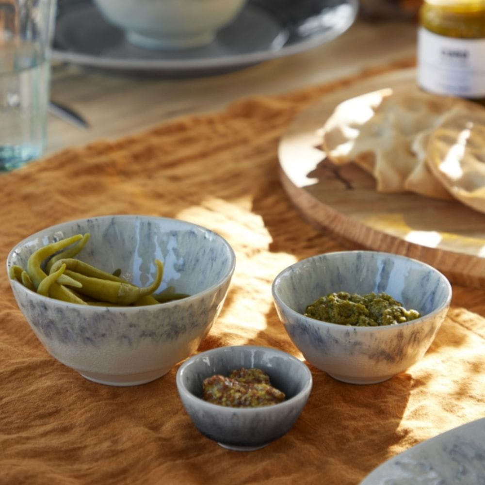 Porcjówka doskonale sprawdzi się do serwowania sosów, dipów, oliwek, przypraw czy małych przekąsek, zarówno podczas codziennych posiłków, jak i eleganckich przyjęć. Dzięki trwałej kamionce jest odporna na wysokie temperatury, można ją używać w mikrofalówce, piekarniku oraz myć w zmywarce, zachowując piękno i funkcjonalność na lata.