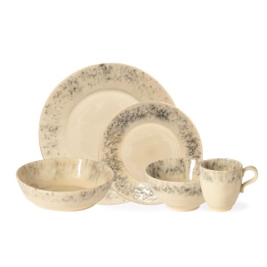 Serwis obiadowy dla jednej osoby Madeira Cream Costa Nova to elegancka i funkcjonalna zastawa wykonana z wysokiej jakości portugalskiej kamionki stoneware. Subtelny ciepły odcień oraz lekko nieregularny, organiczny kształt talerzy, miseczki i filiżanki nadają całemu zestawowi naturalnego, rękodzielniczego charakteru, który wprowadza harmonię i elegancję na każdy stół.