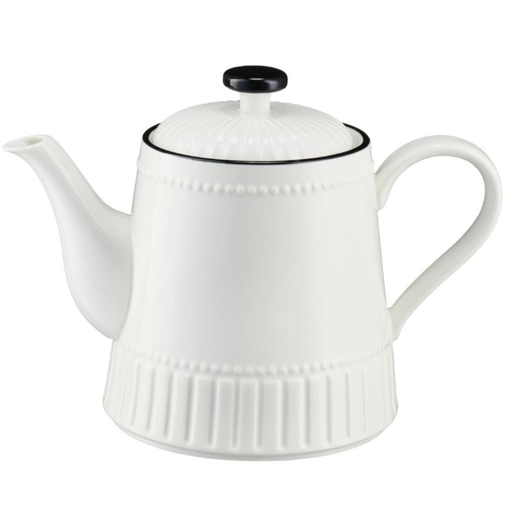 Dzbanek do herbaty PILLAR 1000 ml to elegancki i praktyczny element kolekcji, który łączy ponadczasowy styl retro z funkcjonalnym designem. Wykonany z wysokiej jakości porcelany, zachwyca mlecznobiałym kolorem oraz subtelną czarną, ręcznie malowaną linią na obrzeżu, charakterystyczną dla całej serii PILLAR.
