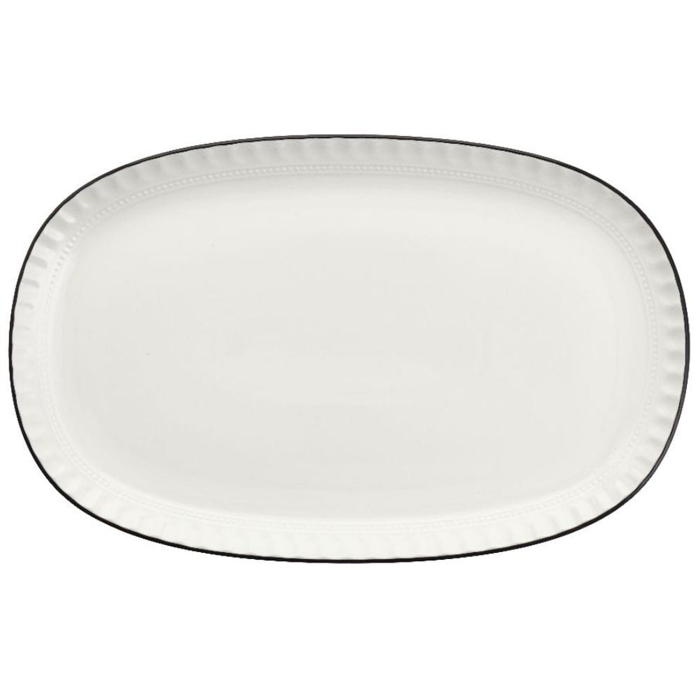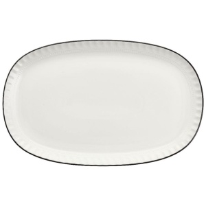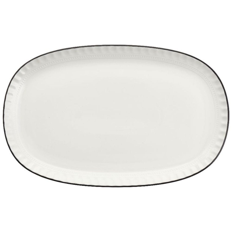 Porcelanowy półmisek owalny PILLAR 36 × 23 cm łączy elegancję z rustykalnym urokiem. Mlecznobiała porcelana z subtelną czarną linią na obrzeżu doskonale nadaje się do serwowania mięs, ryb, przystawek i deserów. Stylowy akcent na każdym stole.