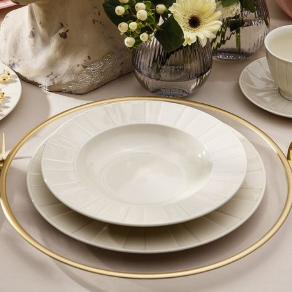 Wykonany z ekskluzywnej porcelany, w subtelnym waniliowym kolorze, stanowi idealne uzupełnienie każdej zastawy stołowej.