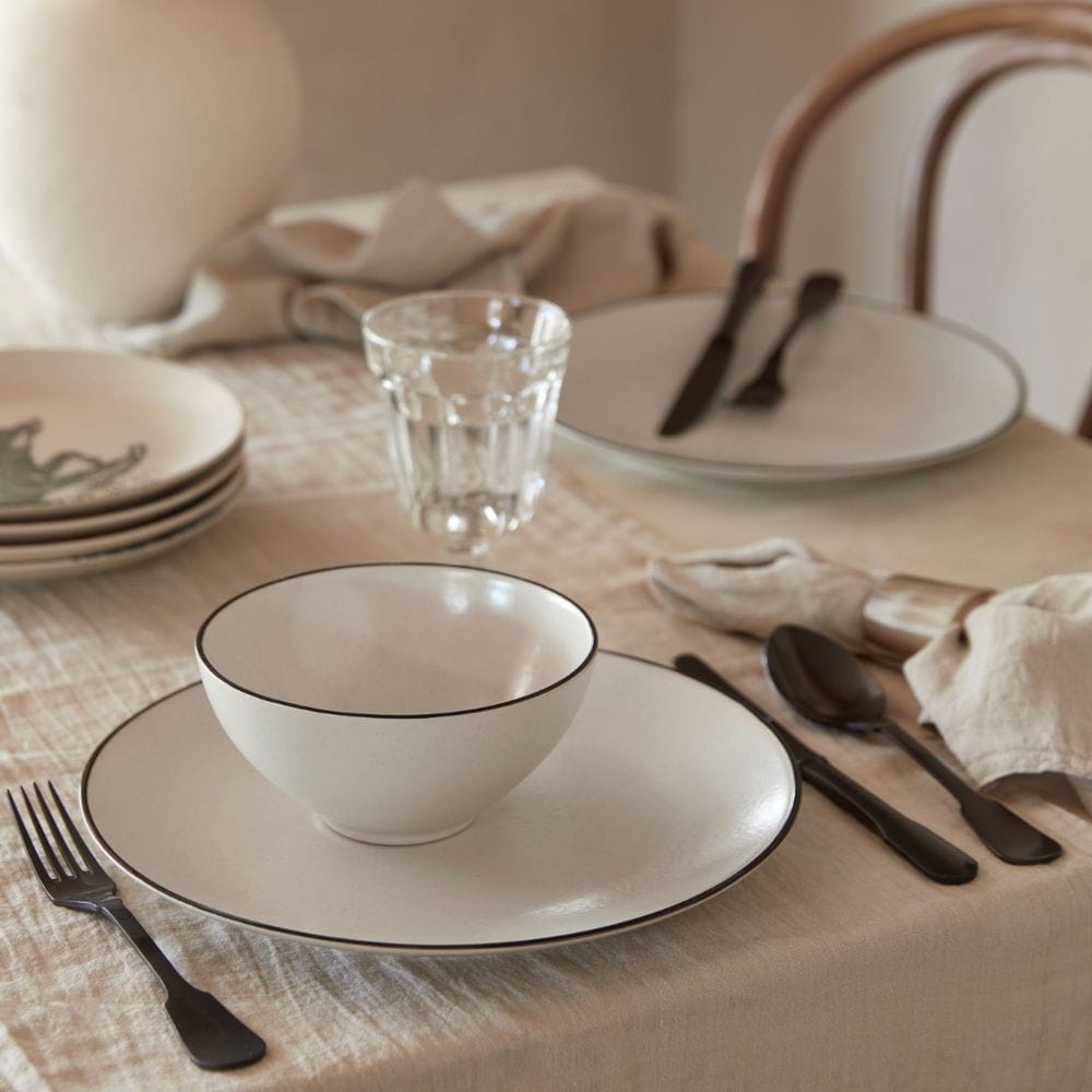 Zestaw obiadowy 30-elementowy z filiżankami Costa Nova AUGUSTA to kompletna zastawa stołowa dla sześciu osób, łącząca nowoczesną elegancję z portugalskim rzemiosłem. Wykonany z wysokiej jakości kamionki, każdy element zestawu zachwyca matowym wykończeniem w ciepłym beżu, podkreślonym subtelną czarną lub złotą linią.