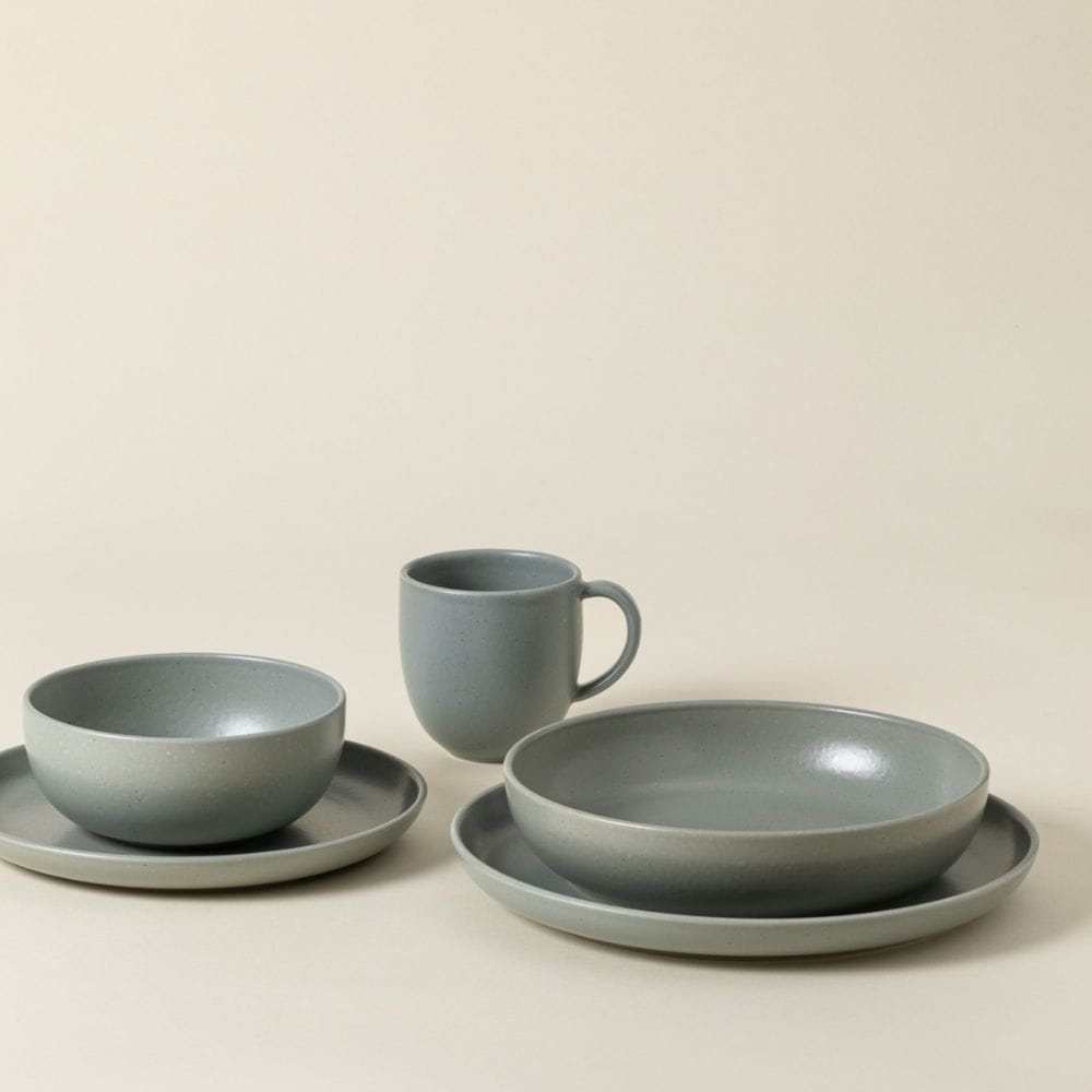 Matowa glazura w subtelnym odcieniu artichoke – inspirowanym zielenią karczocha – wprowadza spokój, naturalność i klasę do każdej aranżacji stołu. Ręczne wykończenie i wysokiej jakości kamionka (stoneware) sprawiają, że każdy element zestawu jest unikalny i odporny na codzienne użytkowanie.
